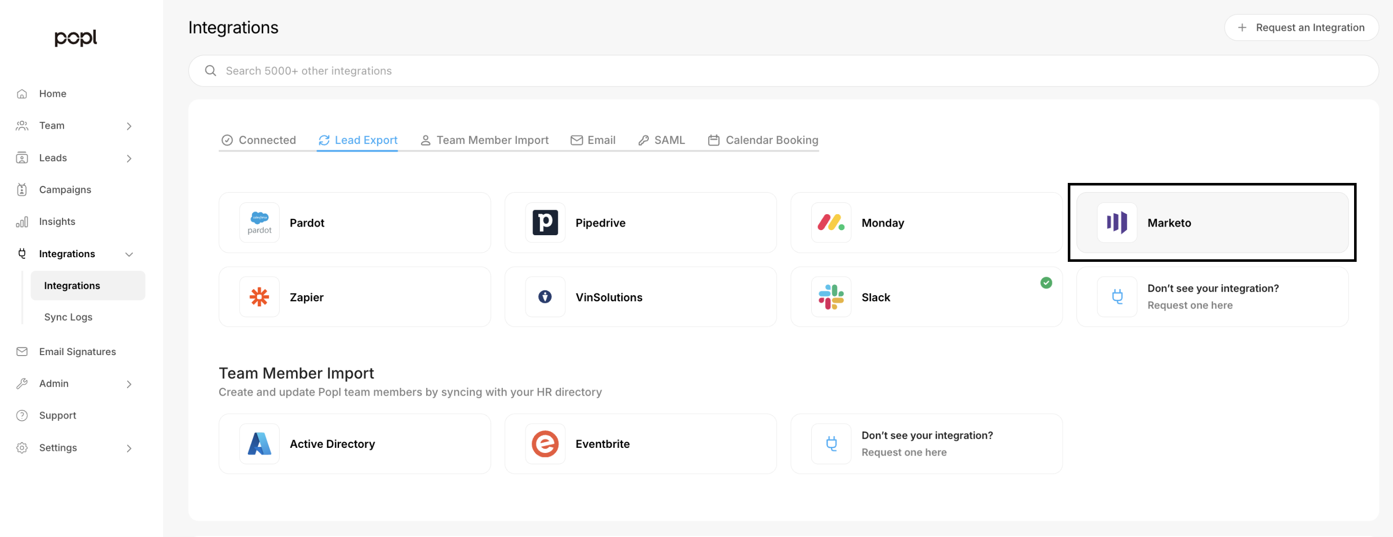 Connect Popl to Marketo to sync Popl Leads to Marketo People